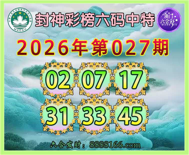027期:【封神彩榜】 ♣️六码中特♣️【02.07.17.31.33.45】开:45准