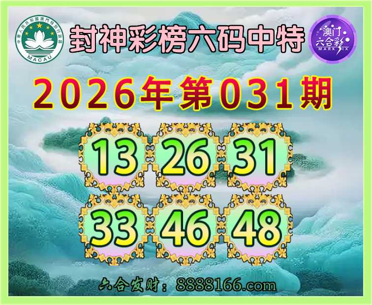 031期:【封神彩榜】 ♣️六码中特♣️【13.26.31.33.46.48】开:26准