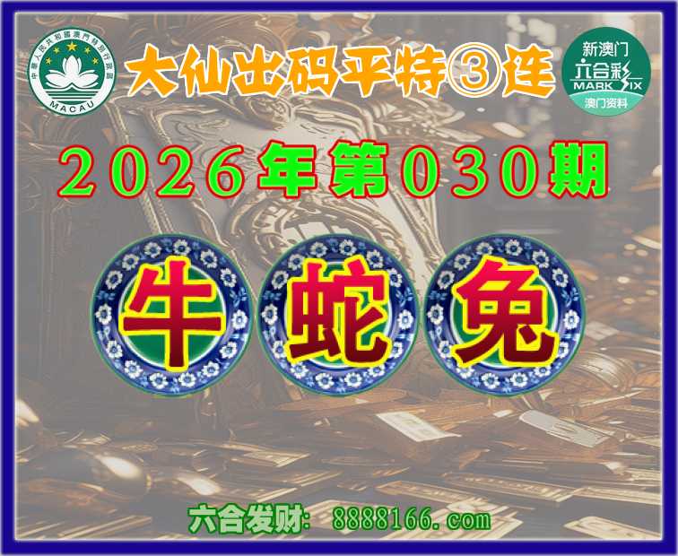 030期:【大仙出码】 🩴平特③连🩴【牛蛇兔】开:牛41,蛇01,兔03准