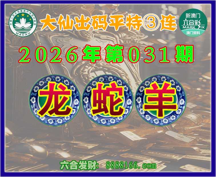031期:【大仙出码】 🩴平特③连🩴【龙蛇羊】开:龙26,蛇25,羊11准