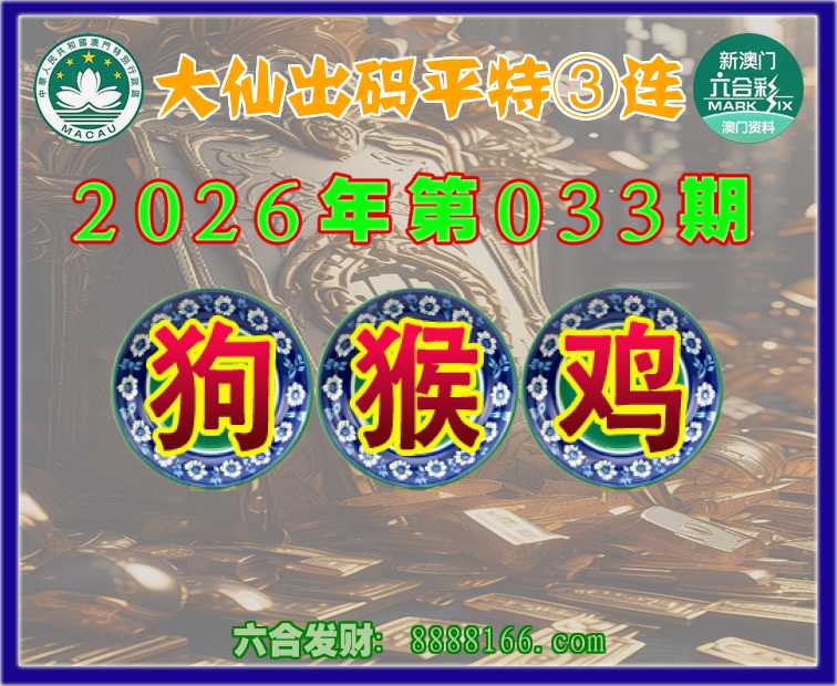 033期:【大仙出码】 🩴平特③连🩴【狗猴鸡】开:狗08,猴22,鸡33准