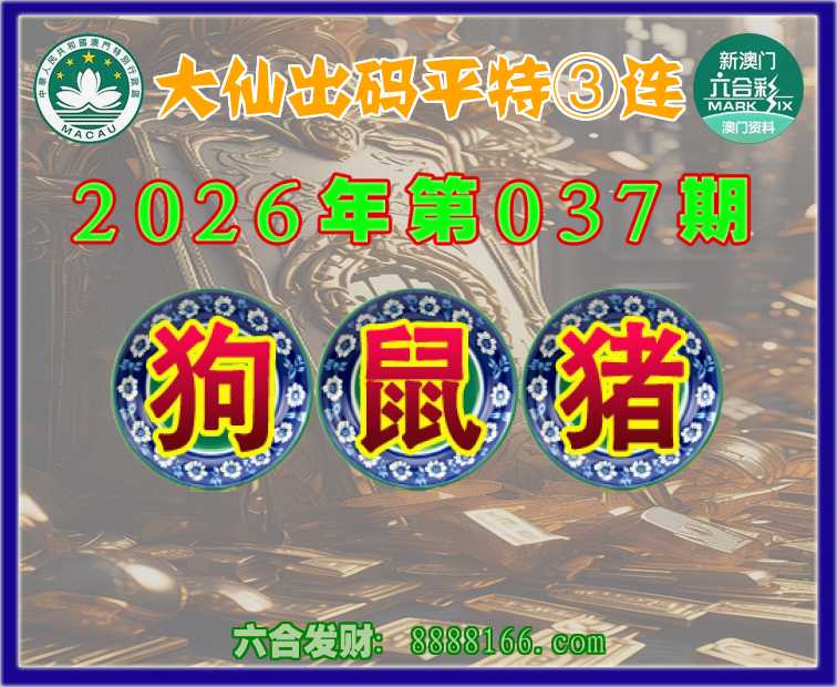 037期:【大仙出码】 🩴平特③连🩴【狗鼠猪】开:狗44,鼠42,猪43准