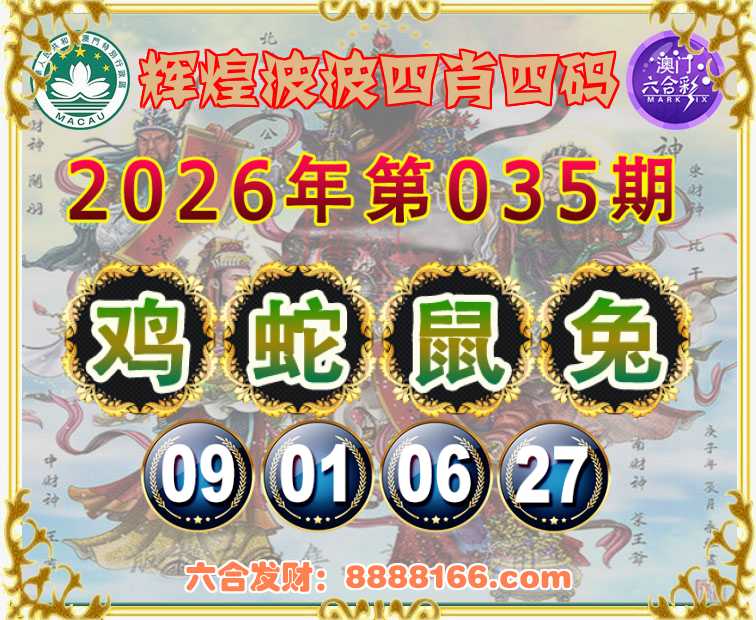 035期:〖辉煌波波〗 ⌚四肖四码⌚【鸡蛇鼠兔】【09.01.06.27】开:兔27准