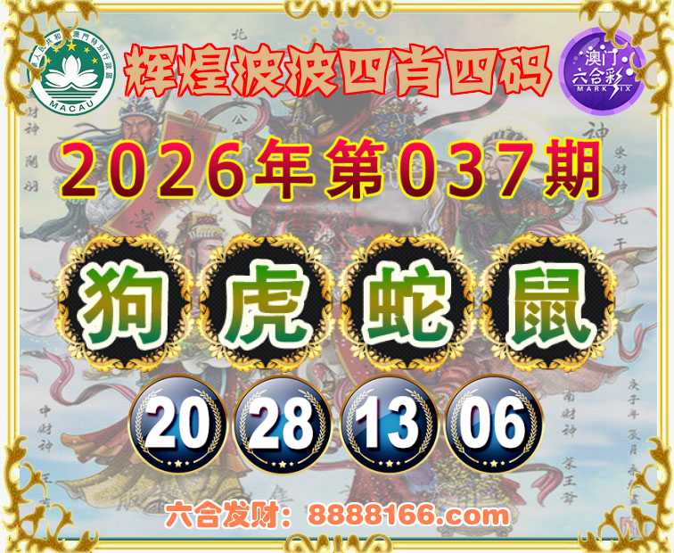 037期:〖辉煌波波〗 ⌚四肖四码⌚【狗虎蛇鼠】【20.28.13.06】开:猪43错