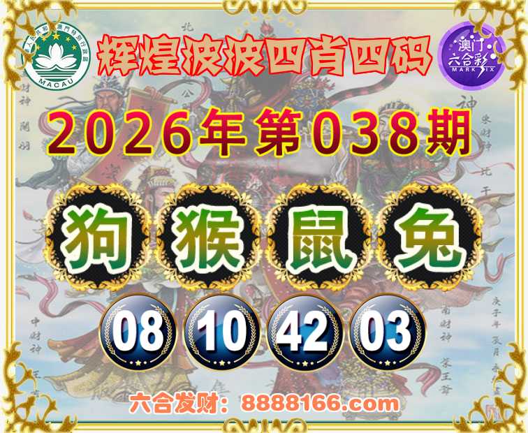 038期:〖辉煌波波〗 ⌚四肖四码⌚【狗猴鼠兔】【08.10.42.03】开:鼠42准
