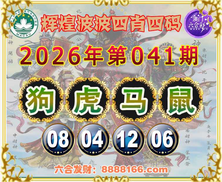 041期:〖辉煌波波〗 ⌚四肖四码⌚【狗虎马鼠】【08.04.12.06】开:马36准