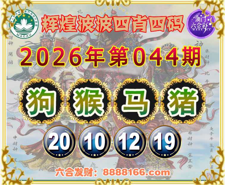 044期:〖辉煌波波〗 ⌚四肖四码⌚【狗猴马猪】【20.10.12.19】开:猪19准