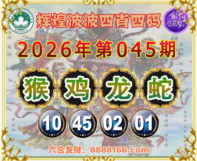 045期:〖辉煌波波〗 ⌚四肖四码⌚【猴鸡龙蛇】【10.45.02.01】开:蛇01准