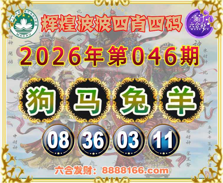 046期:〖辉煌波波〗 ⌚四肖四码⌚【狗马兔羊】【08.36.03.11】开:兔03准