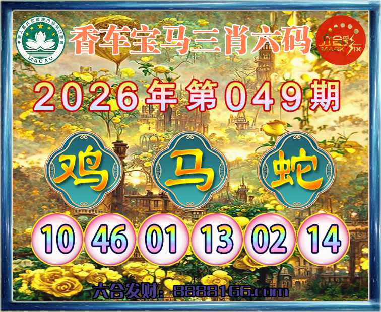 049期:『香车宝马』 🚣三肖六码🚣【鸡马蛇】开:马13准