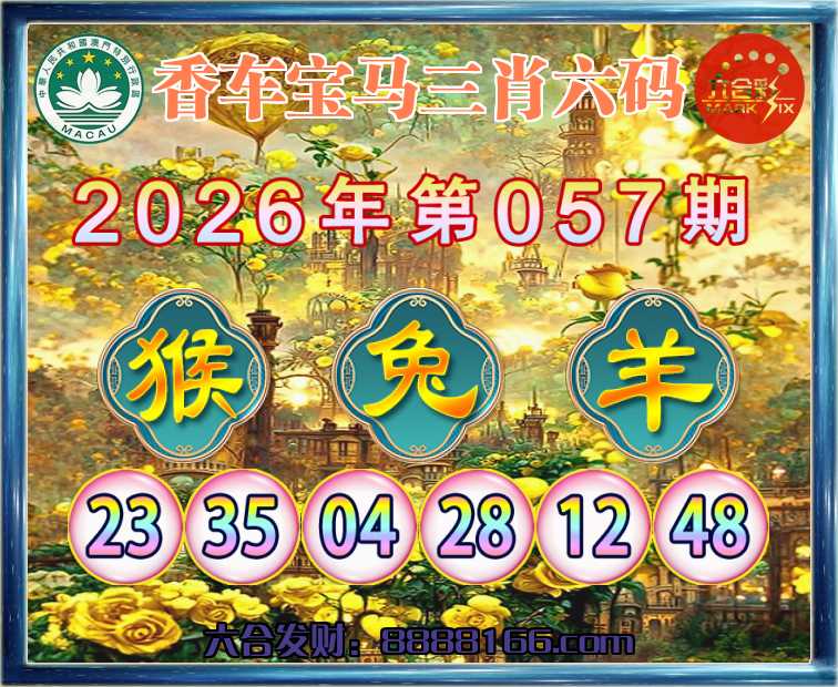 057期:『香车宝马』 🚣三肖六码🚣【猴兔羊】开:猴23准