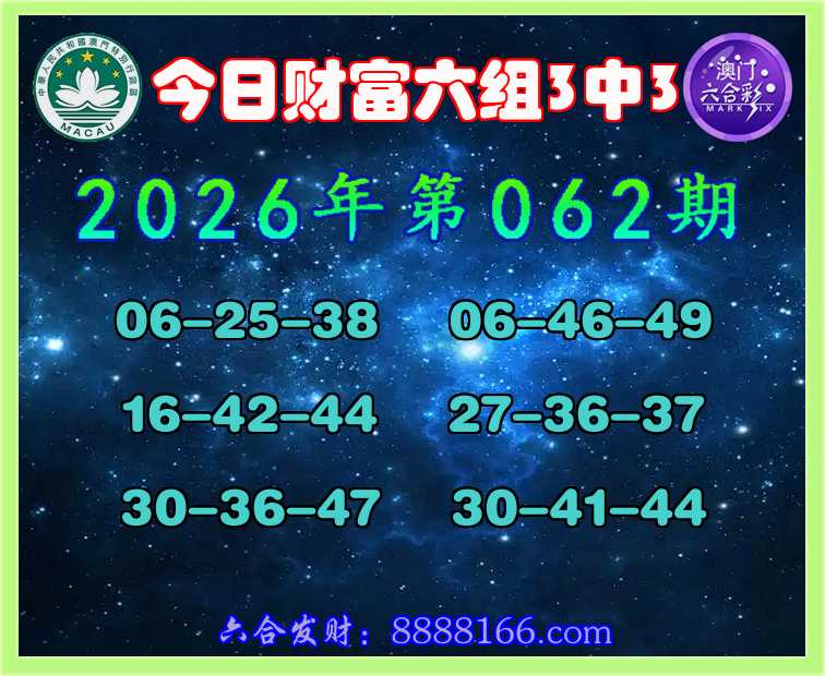 062期:《今日财富》 🍀六组3中3🍀