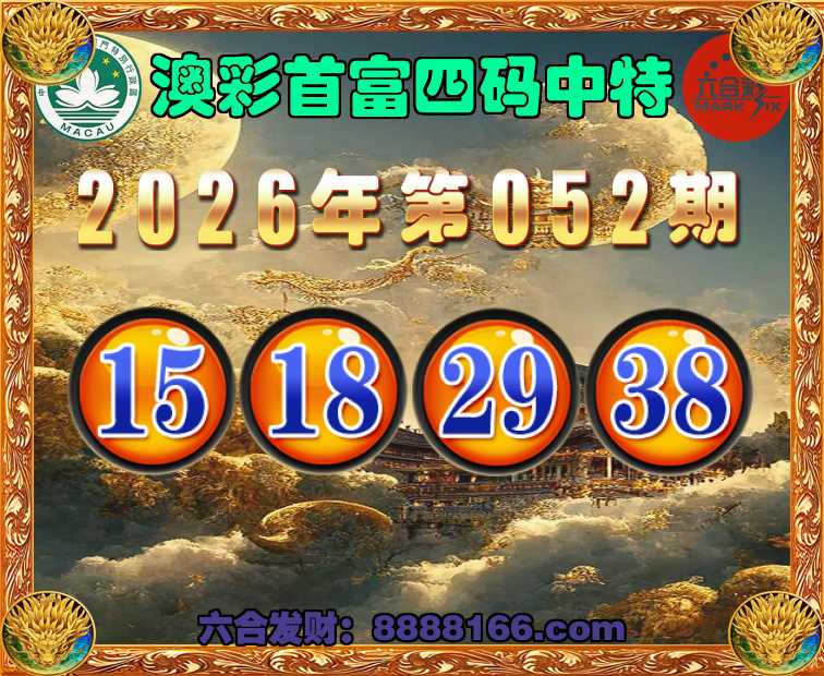 052期:《澳彩首富》 🍄四码中特🍄【15.18.29.38】开:38准