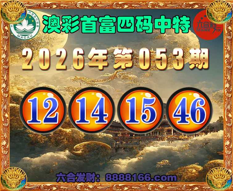 053期:《澳彩首富》 🍄四码中特🍄【12.14.15.46】开:15准