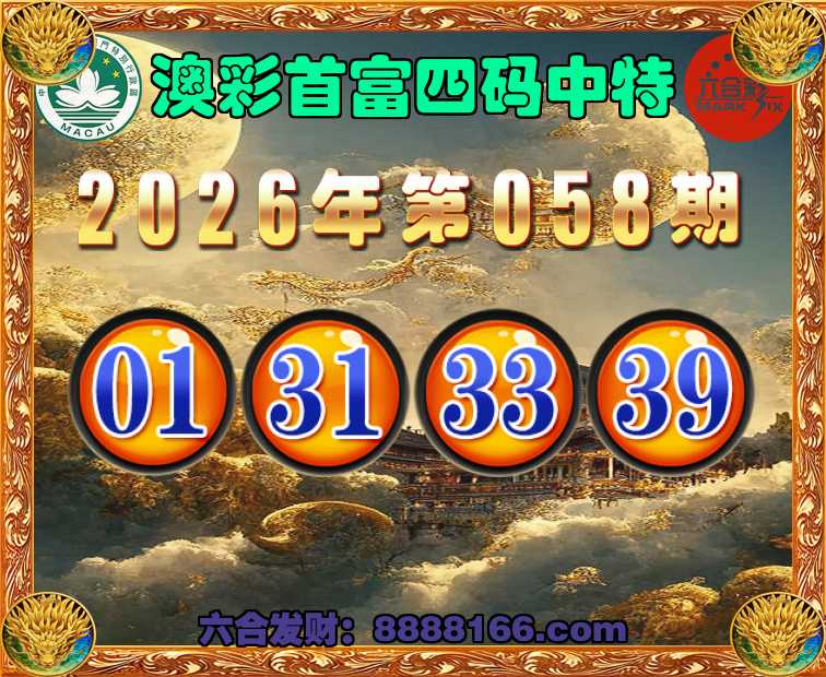 058期:《澳彩首富》 🍄四码中特🍄【01.31.33.39】开:31准