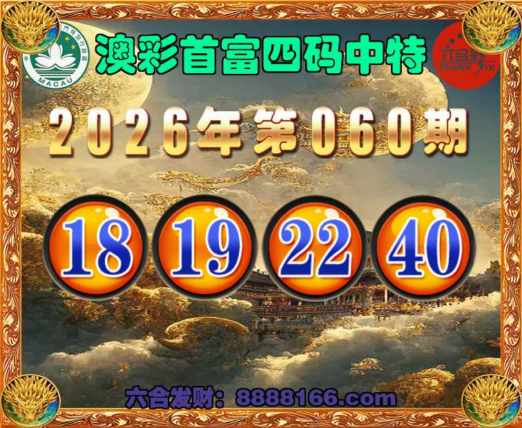 060期:《澳彩首富》 🍄四码中特🍄【18.19.22.40】开:09错