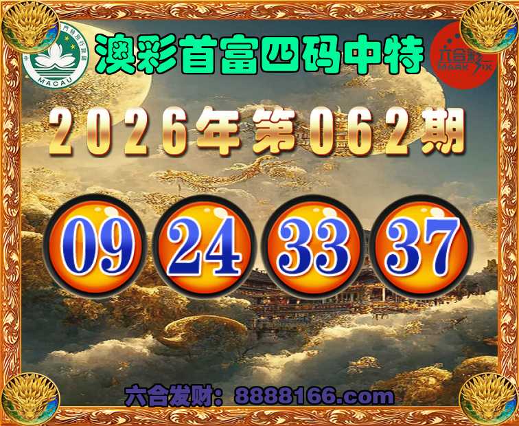 062期:《澳彩首富》 🍄四码中特🍄【09.24.33.37】开:24准