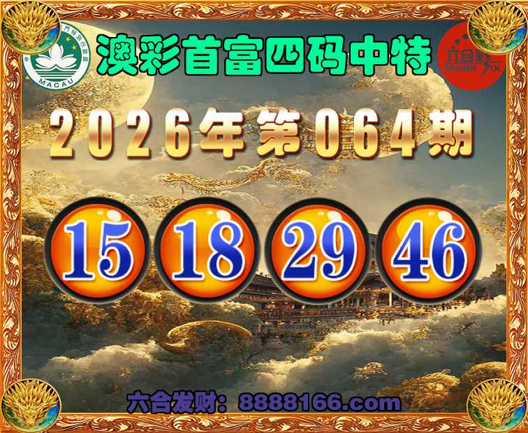 064期:《澳彩首富》 🍄四码中特🍄【15.18.29.46】开:18准