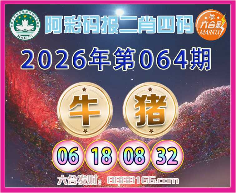 064期:【阿彩码报】 🎯二肖四码🎯【牛猪】【06.18.08.32】开:牛18准