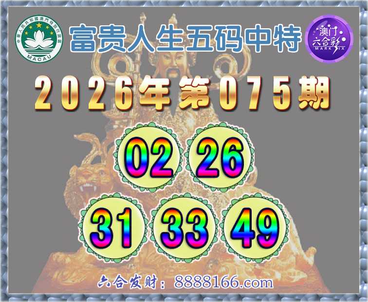 075期: 🍕『富贵人生』 🍕五码中特🍕【02.26.31.33.49】开:33准