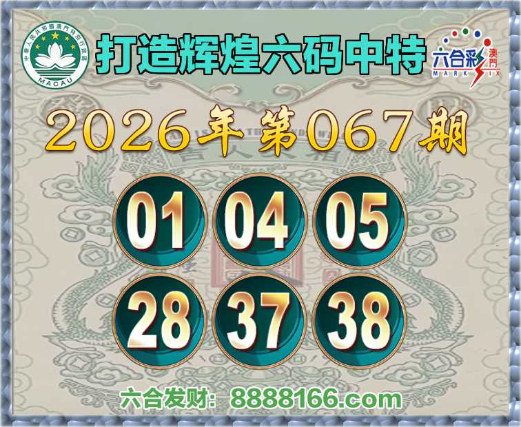 067期:【打造辉煌】 ♠️六码中特♠️【01.04.05.28.37.38】开:05准