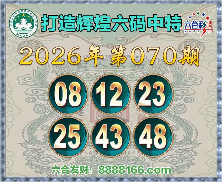 070期:【打造辉煌】 ♠️六码中特♠️【08.12.23.25.43.48】开:25准