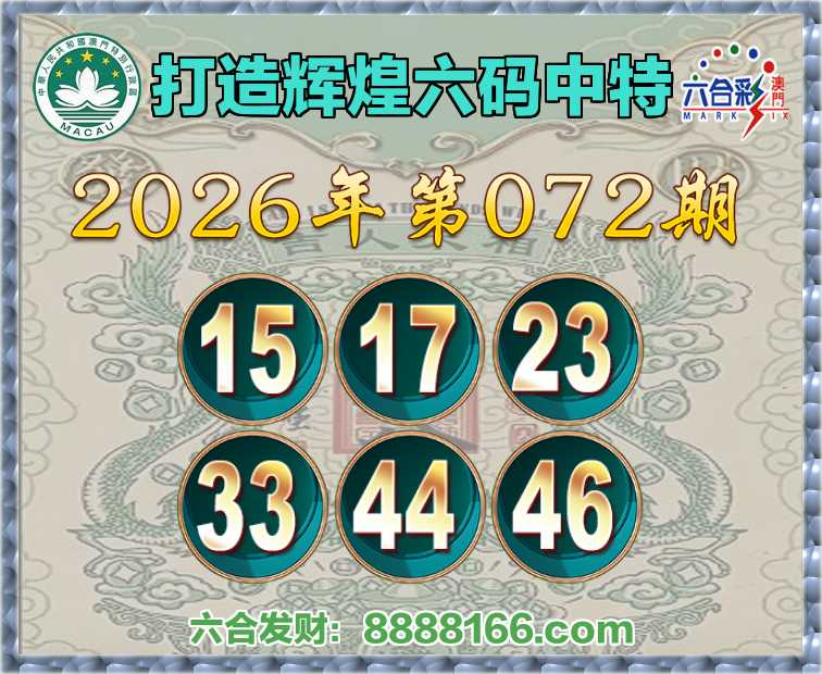 072期:【打造辉煌】 ♠️六码中特♠️【15.17.23.33.44.46】开:46准