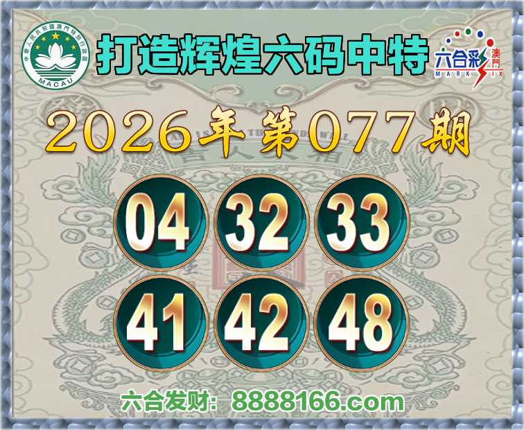 077期:【打造辉煌】 ♠️六码中特♠️【04.32.33.41.42.48】开:29错