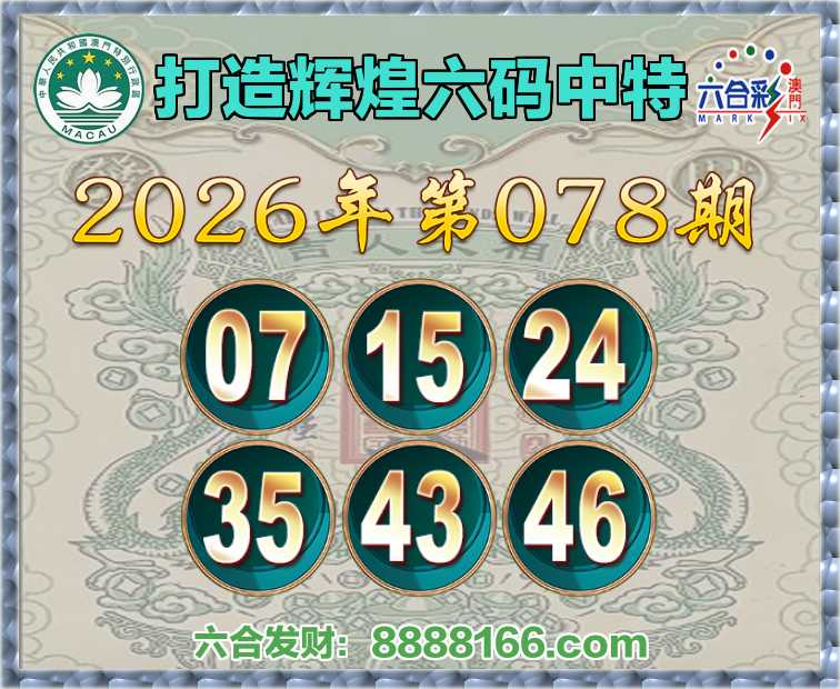 078期:【打造辉煌】 ♠️六码中特♠️【07.15.24.35.43.46】开:46准