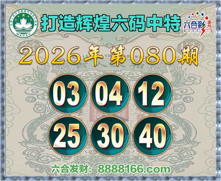 080期:【打造辉煌】 ♠️六码中特♠️【03.04.12.25.30.40】开:03准