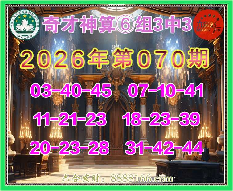 071期:〖奇才神算〗 😍⑥组3中3😍
