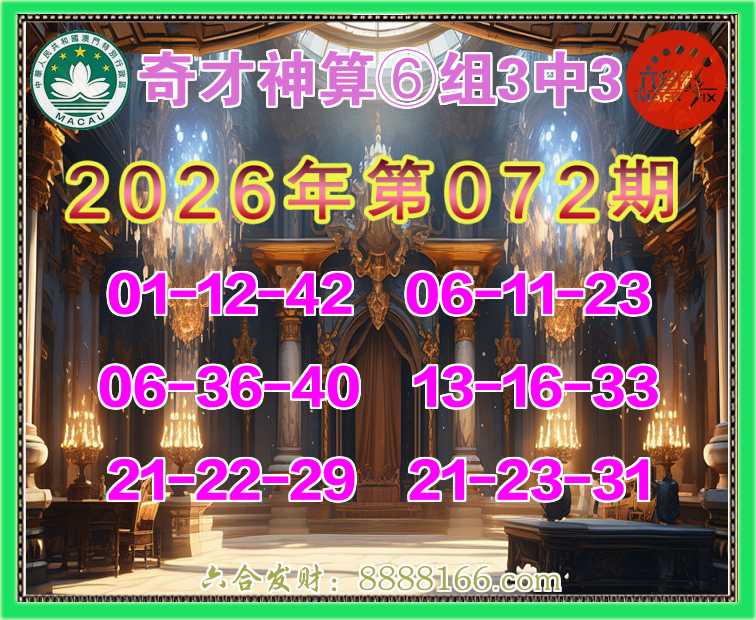 072期:〖奇才神算〗 😍⑥组3中3😍