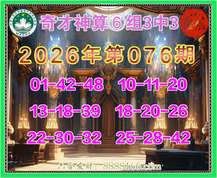 076期:〖奇才神算〗 😍⑥组3中3😍
