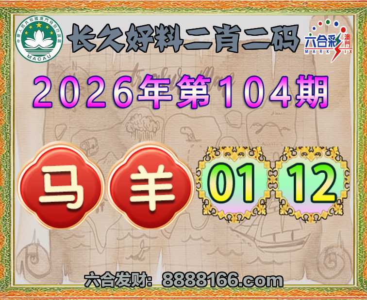 104期:《长久好料》 🥓二肖二码🥓【马羊】【01.12】开:马01准