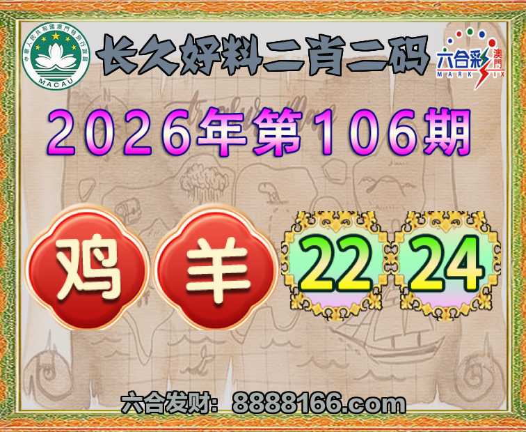 106期:《长久好料》 🥓二肖二码🥓【鸡羊】【22.24】开:鸡22准