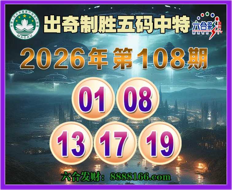 108期:【出奇制胜】 🏄‍♀️五码中特🏄‍♀️【01.08.13.17.19】开:45
