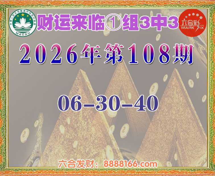 108期:《财运来临》 🎈①组3中3🎈【06-30-40】
