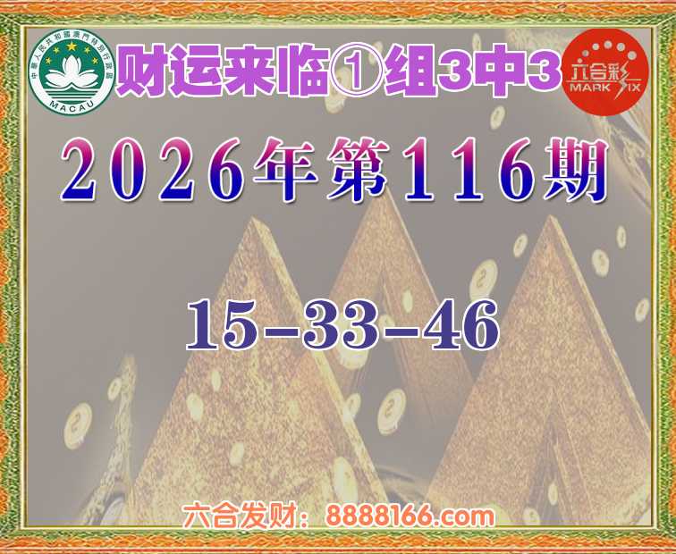 116期:《财运来临》 🎈①组3中3🎈【15-33-46】