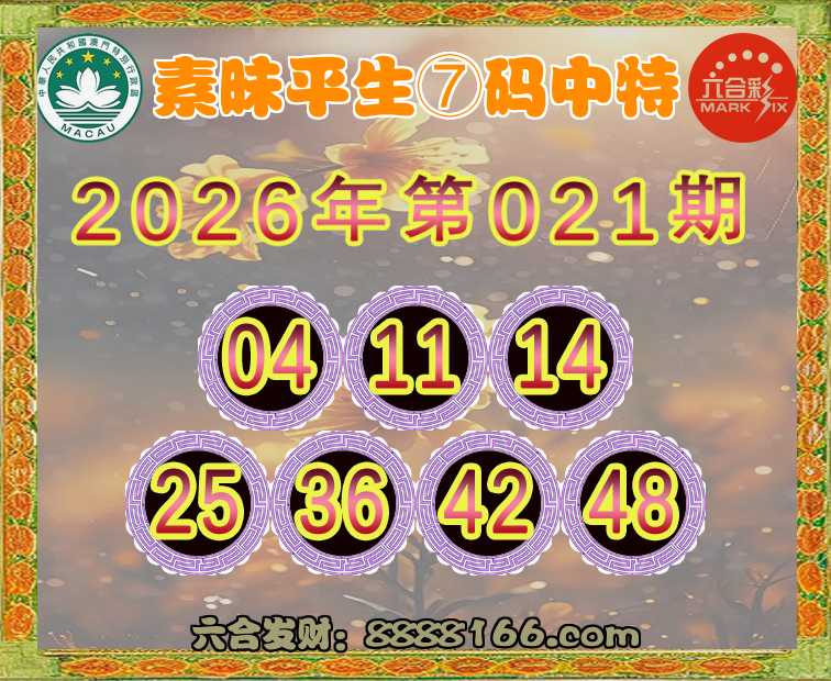 021期: 素昧平生 👩🌾⑦码中特👩🌾【04.11.14.25.36.42.48】开:42准