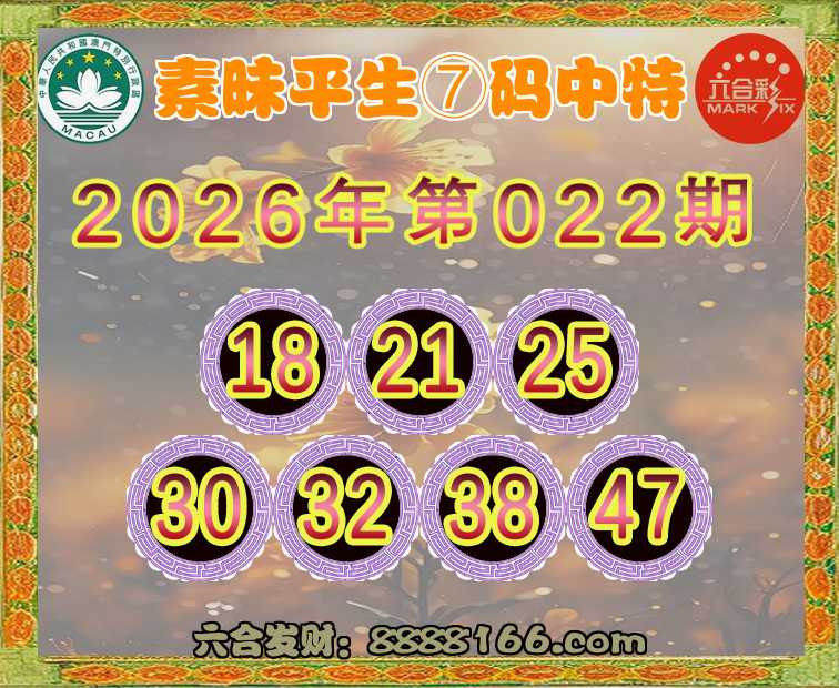 022期: 素昧平生 👩🌾⑦码中特👩🌾【18.21.25.30.32.38.47】开:18准