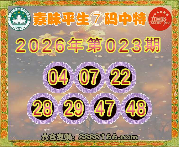 023期: 素昧平生 👩🌾⑦码中特👩🌾【04.07.22.28.29.47.48】开:47准