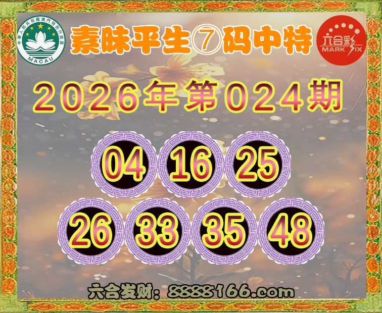 024期: 素昧平生 👩🌾⑦码中特👩🌾【04.16.25.26.33.35.48】开:28错