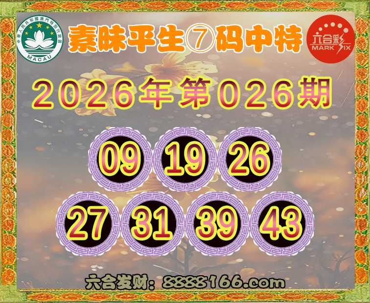 026期: 素昧平生 👩🌾⑦码中特👩🌾【09.19.26.27.31.39.43】开:19准