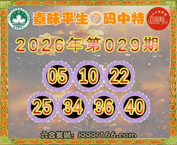029期: 素昧平生 👩🌾⑦码中特👩🌾【05.10.22.25.34.36.40】开:01错