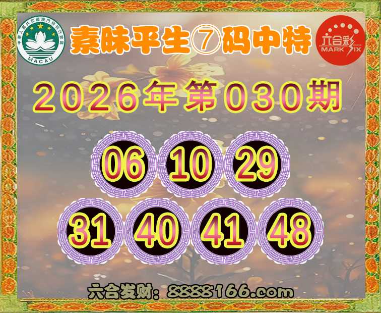 030期: 素昧平生 👩🌾⑦码中特👩🌾【06.10.29.31.40.41.48】开:41准