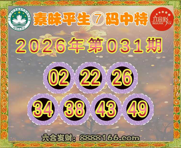 031期: 素昧平生 👩🌾⑦码中特👩🌾【02.22.26.34.38.43.49】开:26准