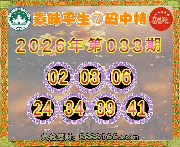 033期: 素昧平生 👩🌾⑦码中特👩🌾【02.03.06.24.34.39.41】开:41准