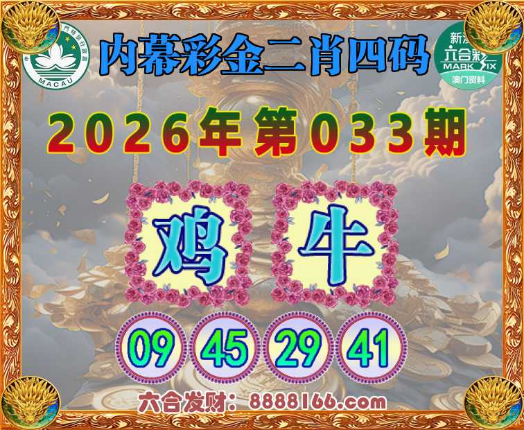 033期:〖内幕彩金〗 ☺️二肖四码☺️【鸡牛】【09.45.29.41】开:牛41准