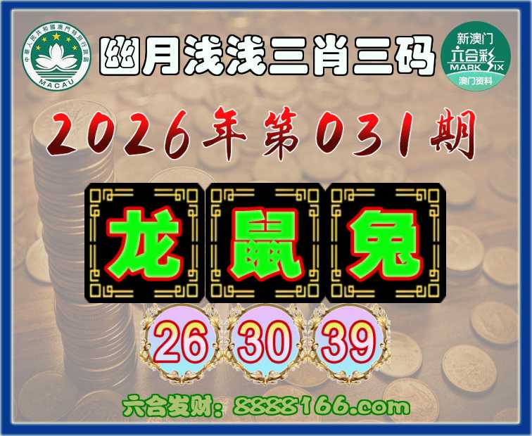 031期: 幽月浅浅 🍏三肖三码🍏【龙鼠兔】【26.30.39】开:龙26准