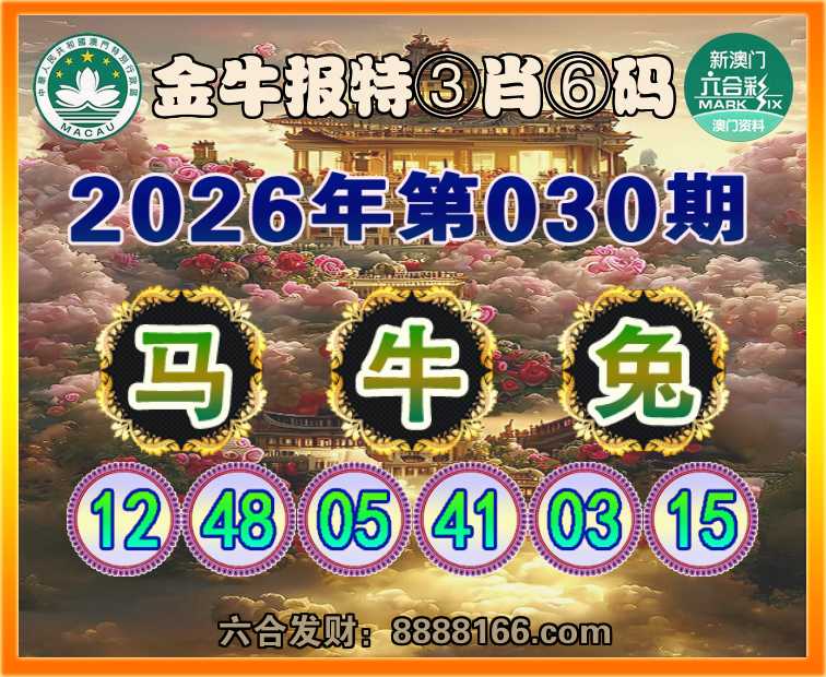 030期:『金牛报特』 ☝️③肖⑥码☝️【马兔】开:牛41